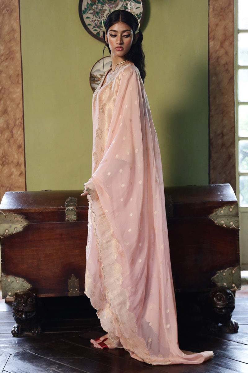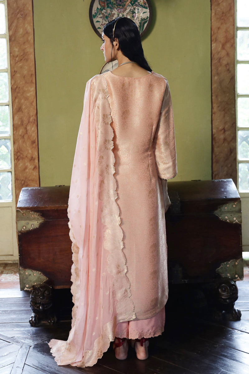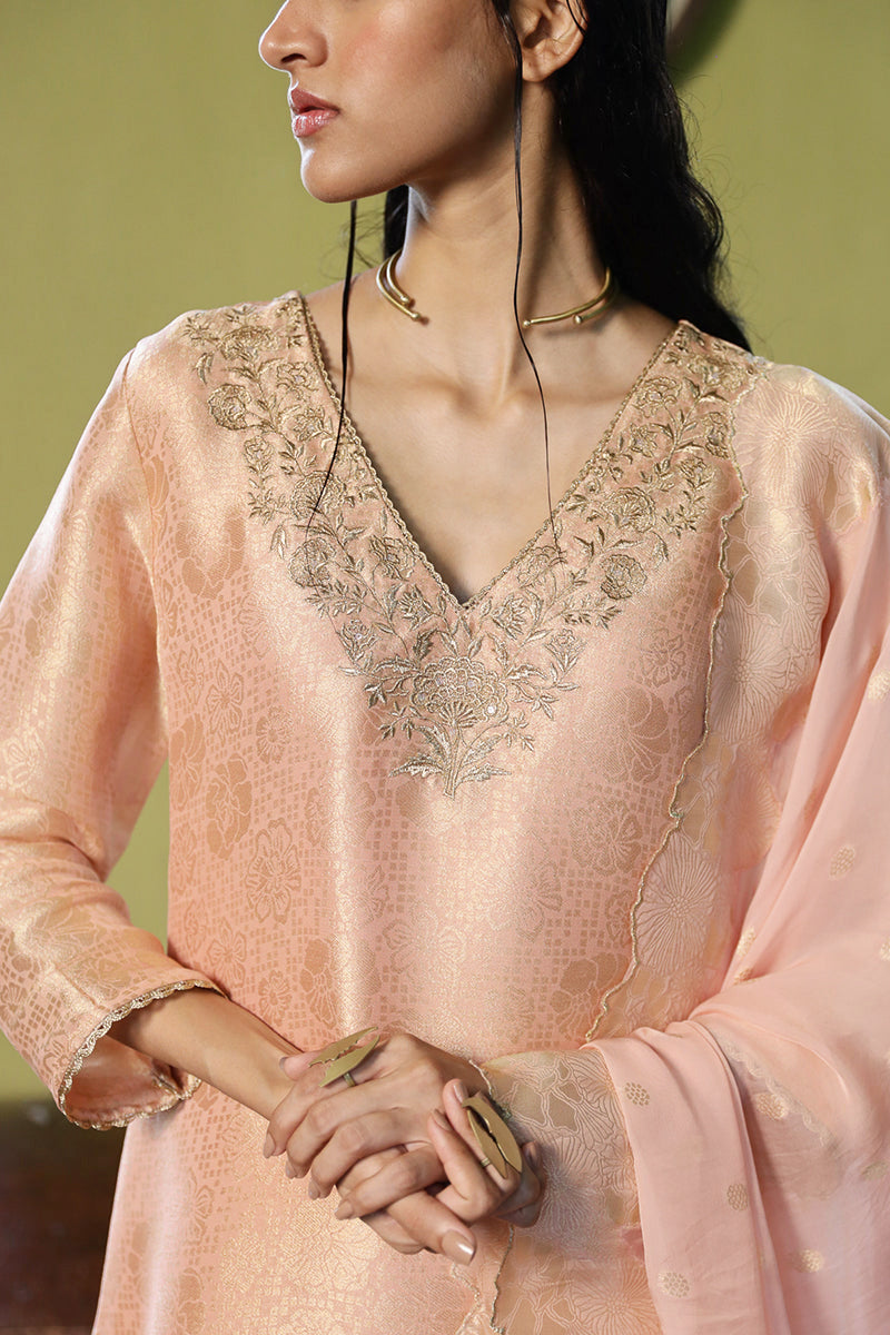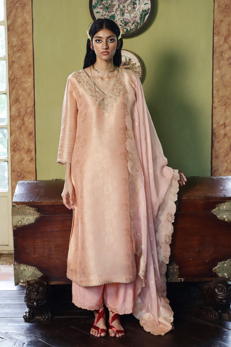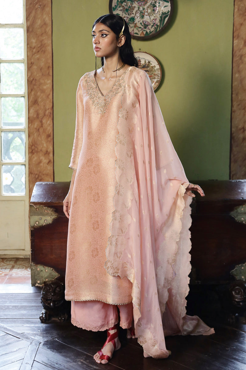 - Top- Zari woven kurta with zari and sequins embroidery.