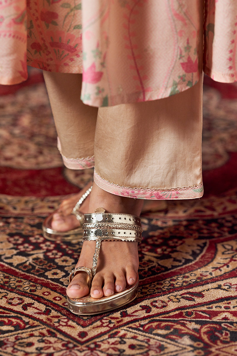- Top- Floral and paisely printed kurta with trim and gathers.