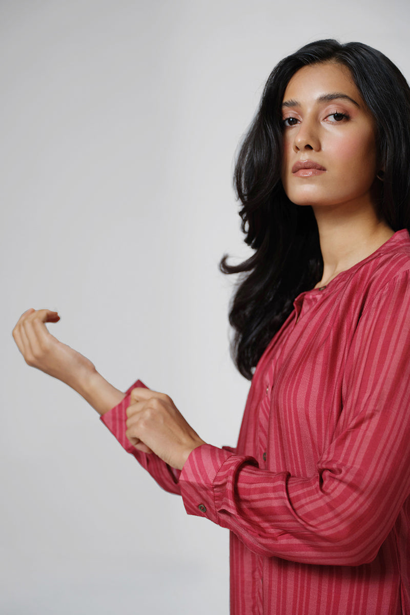 - Stripe and maze print kurta with intricated hand embroidery