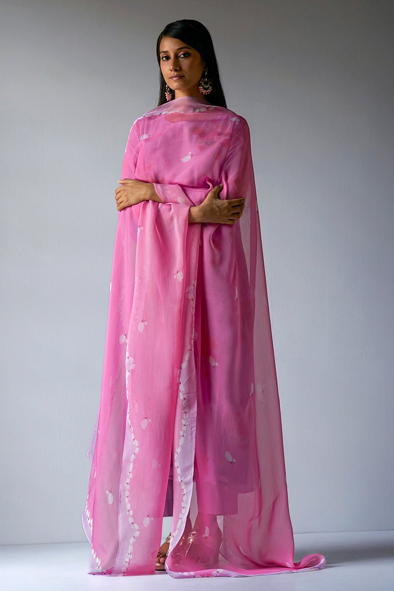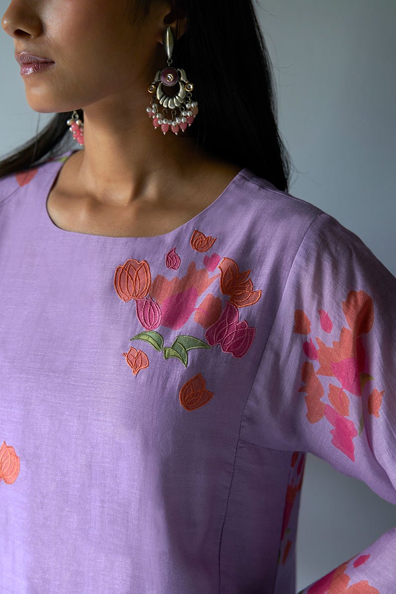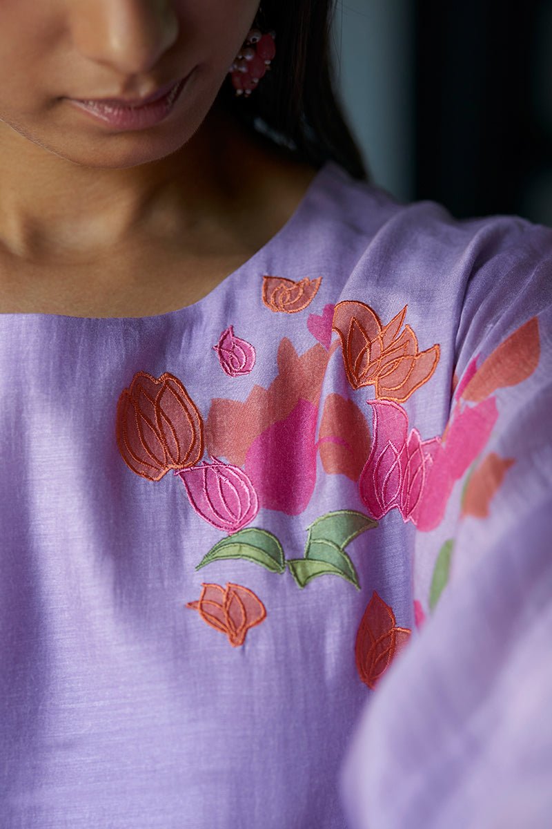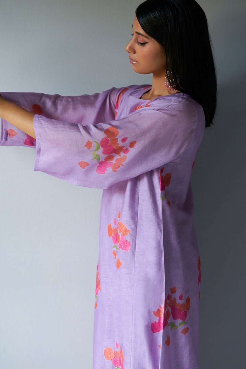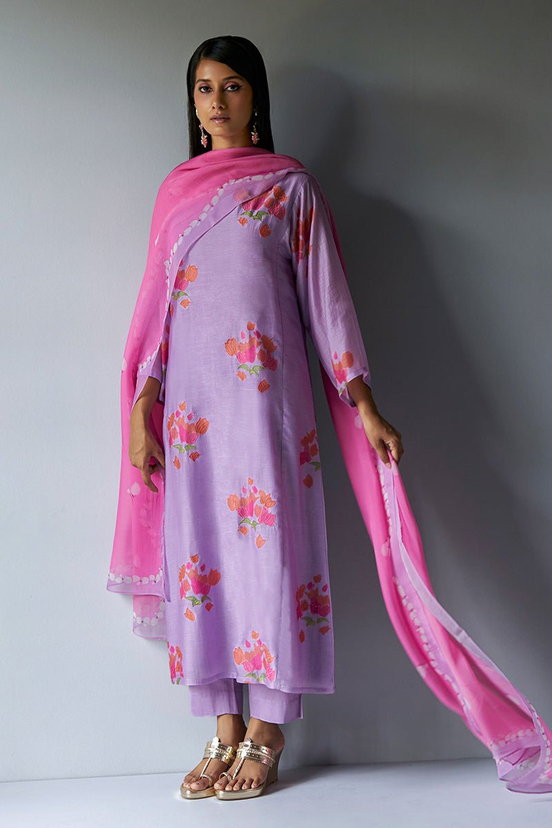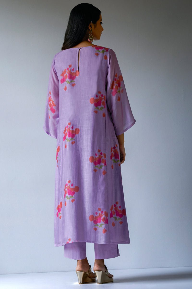 Lavender and Pink Bemberg Silk Printed Salwar Suit With Embroidery Detailing