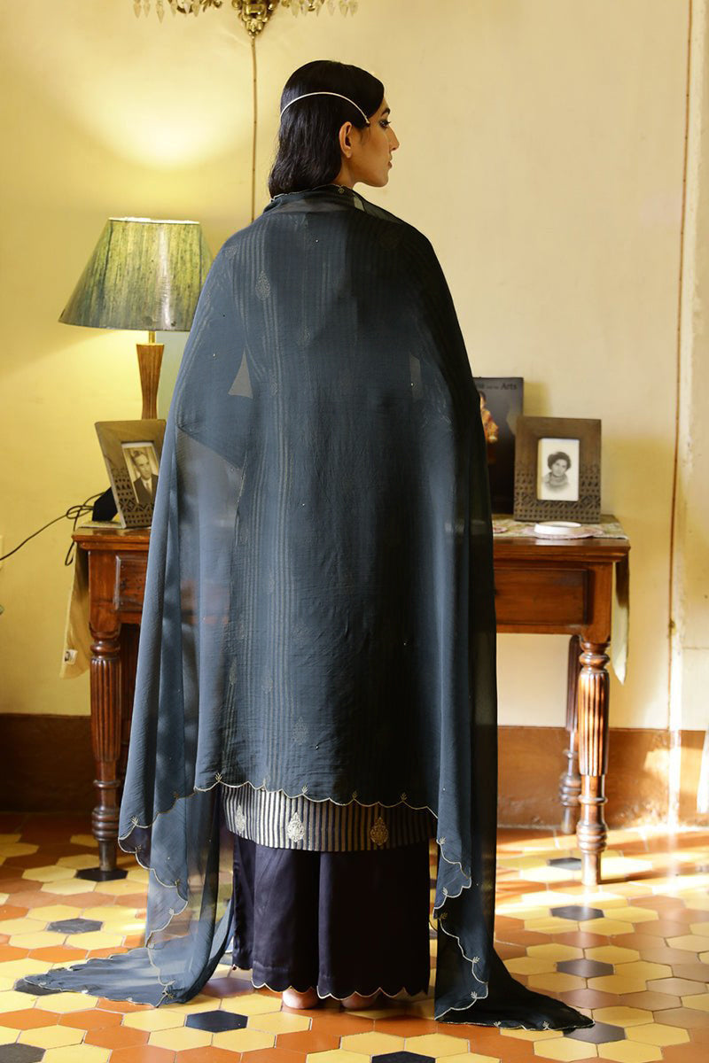 - Dupatta- Scallop embroidered dupatta with mukaish work.
