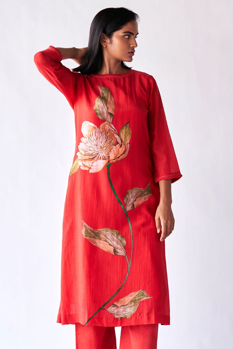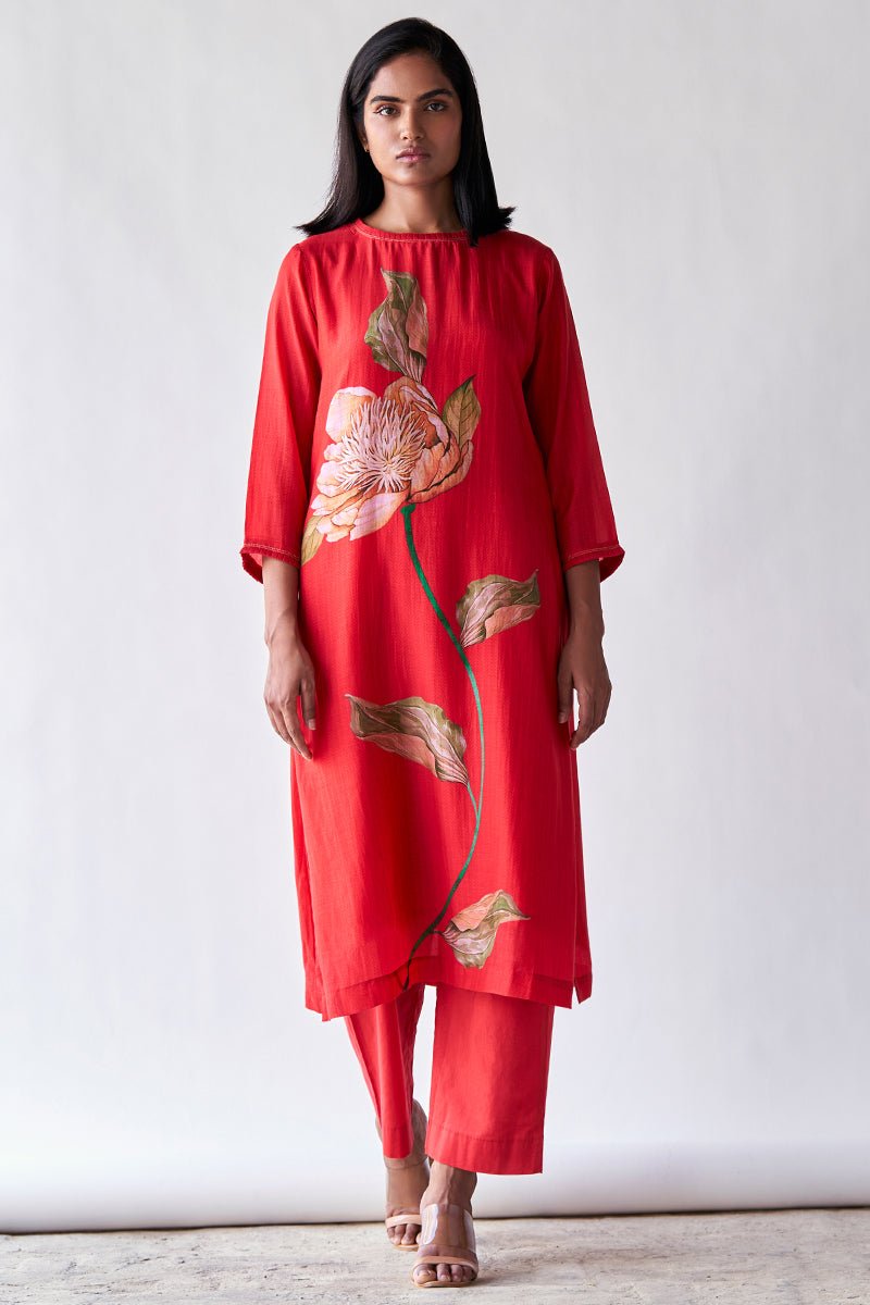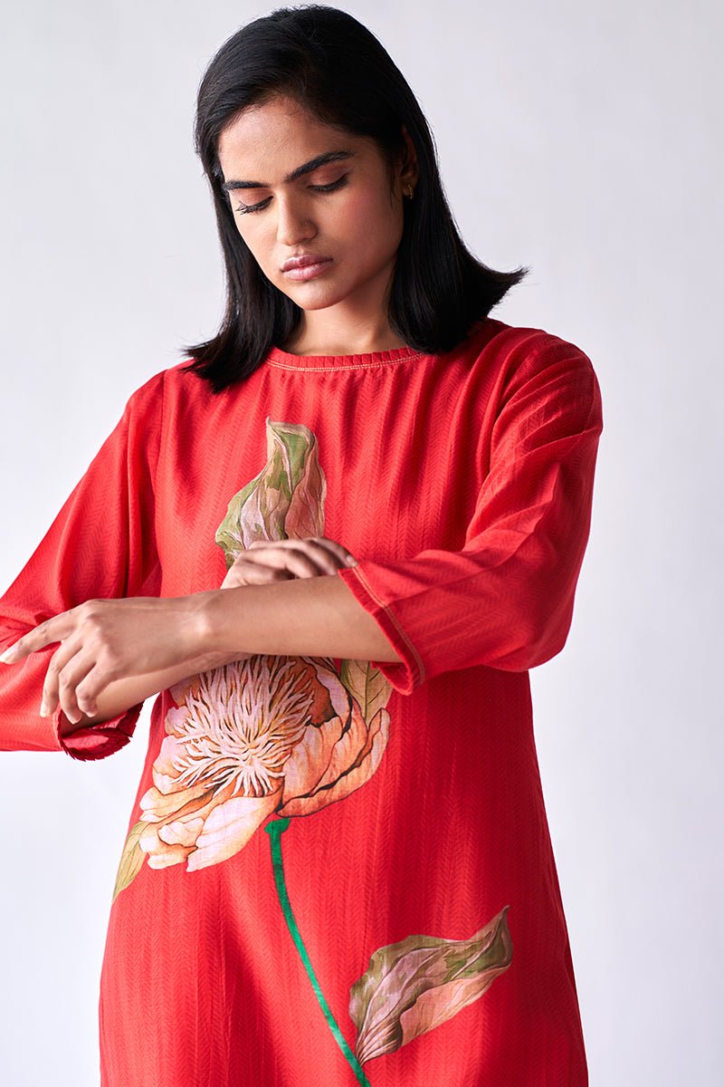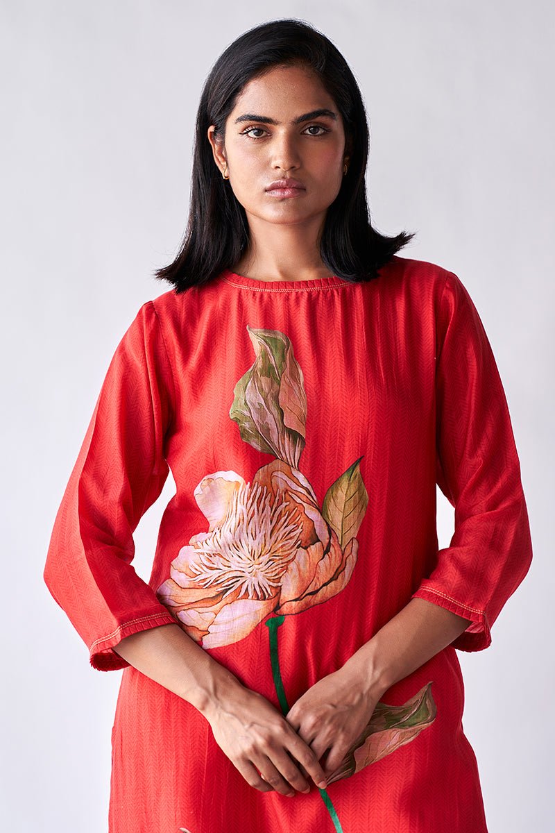 Red Bemberg Silk Co-ord Set